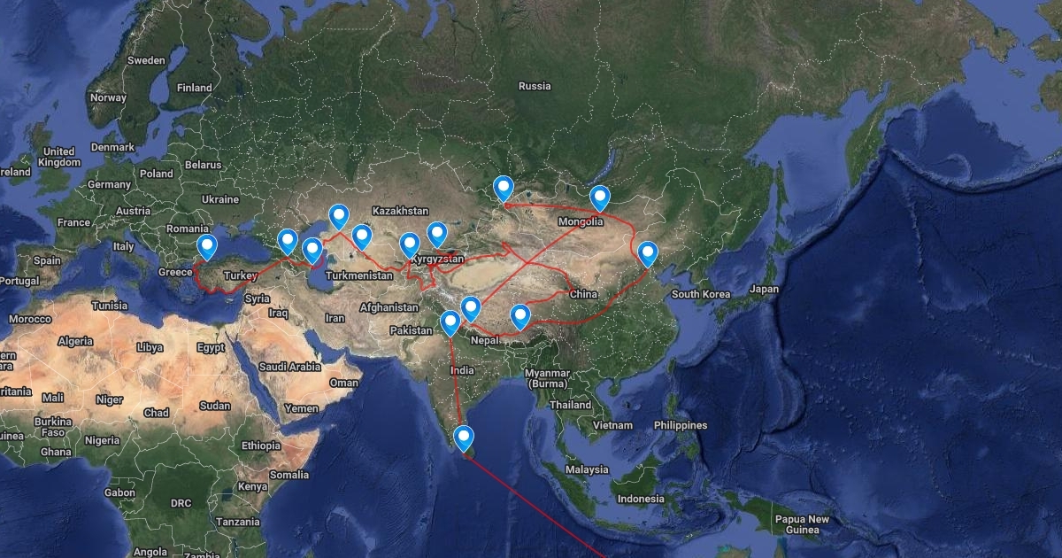 This is the planned route for our journey across the silk roads, travelling West to East in 2018.