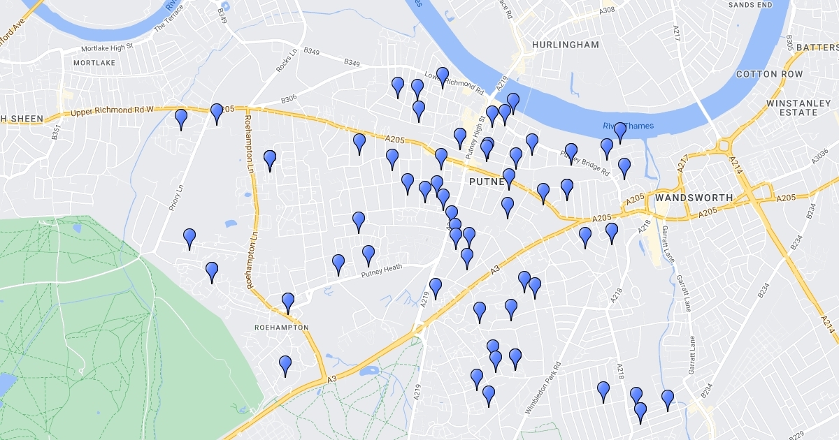 Map of bike hangers needed in Putney
