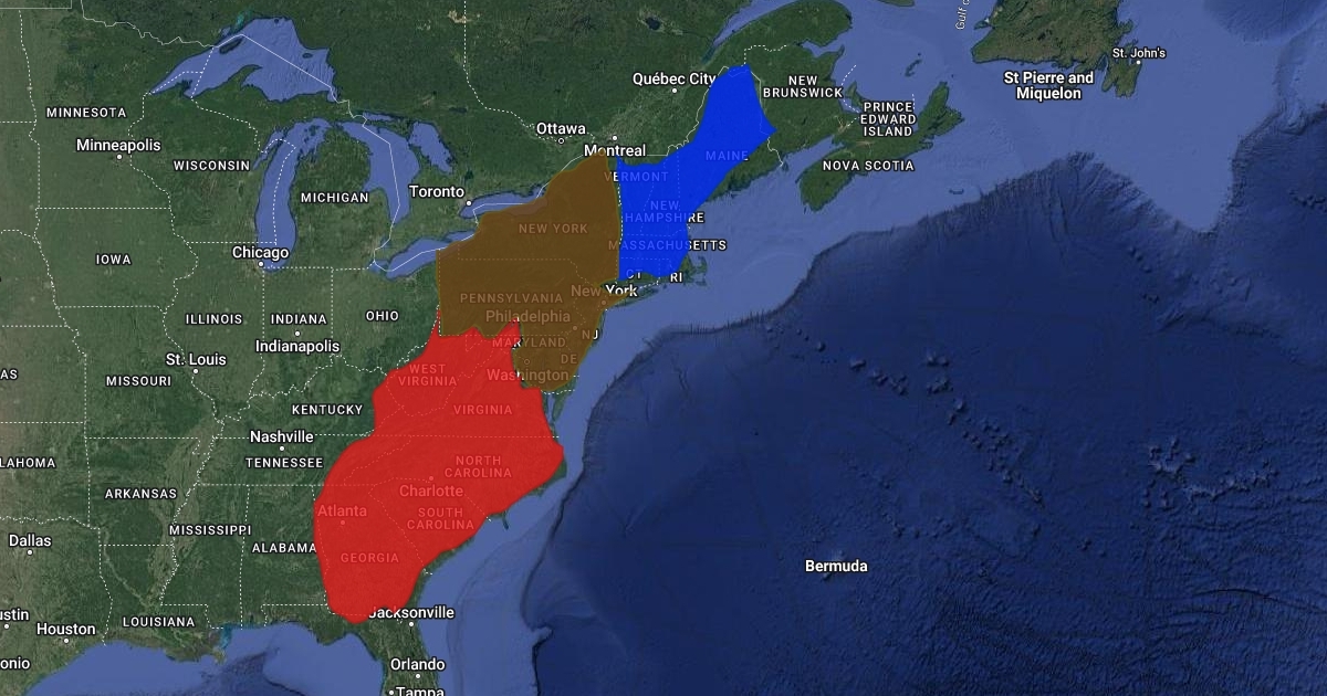colonial map 13teen regions