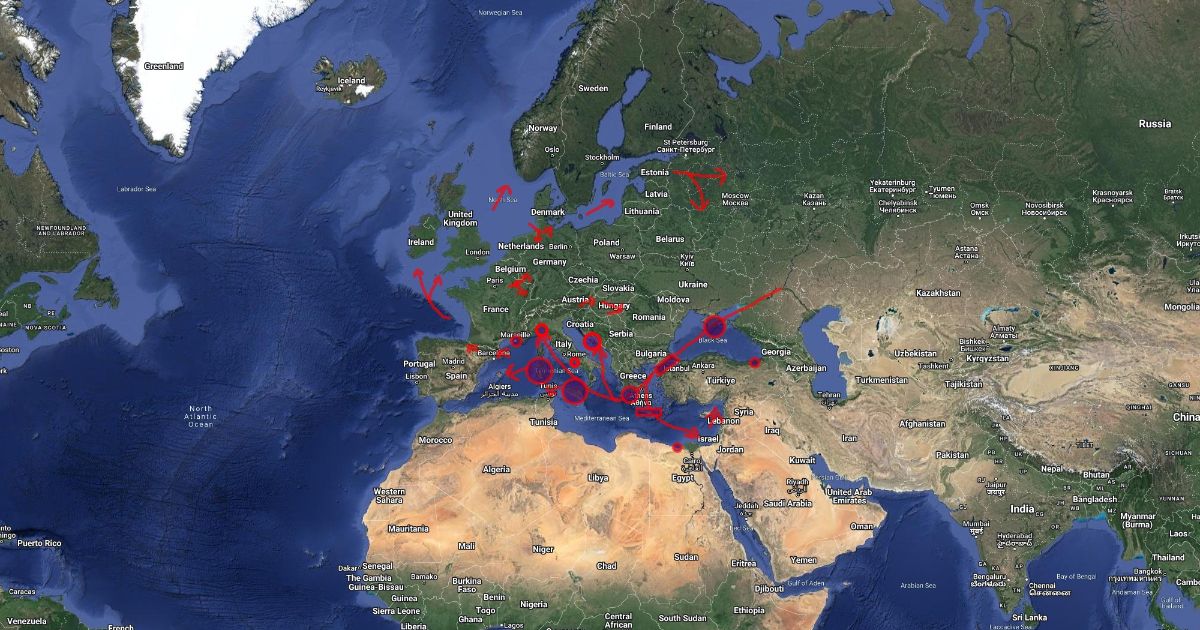 The path of the Black Death.