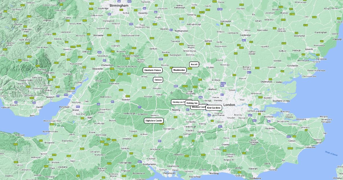 Map of attractions near Blenheim palace