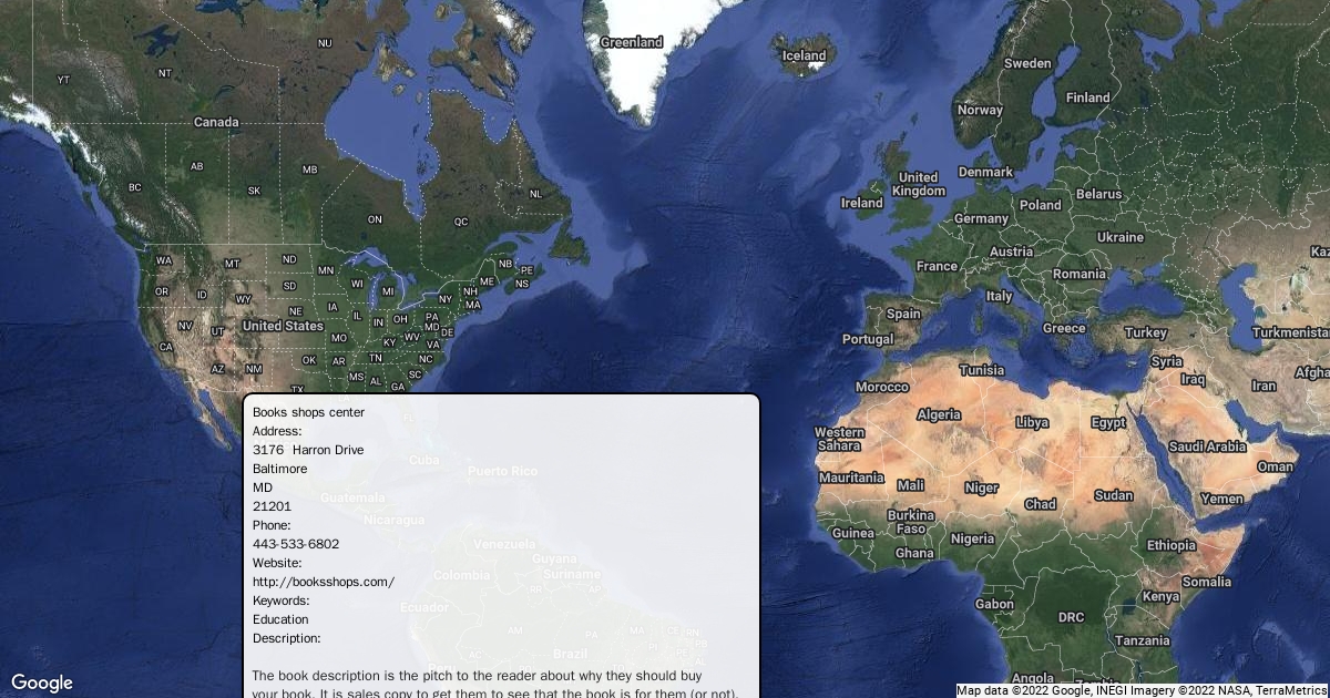 Address: 3176 Harron Drive Baltimore MD 21201 Phone: 443-533-6802 Website: http://booksshops.com/ Keywords: Education Description: The book description is the pitch to the reader about why they should buy your book. It is sales copy to get them to see that the book is for them (or not), and then make the purchase. ... In many cases, the description is the factor that solidifies in the reader's mind whether the book is for them or not. Hours: 8 AM to 5 PM