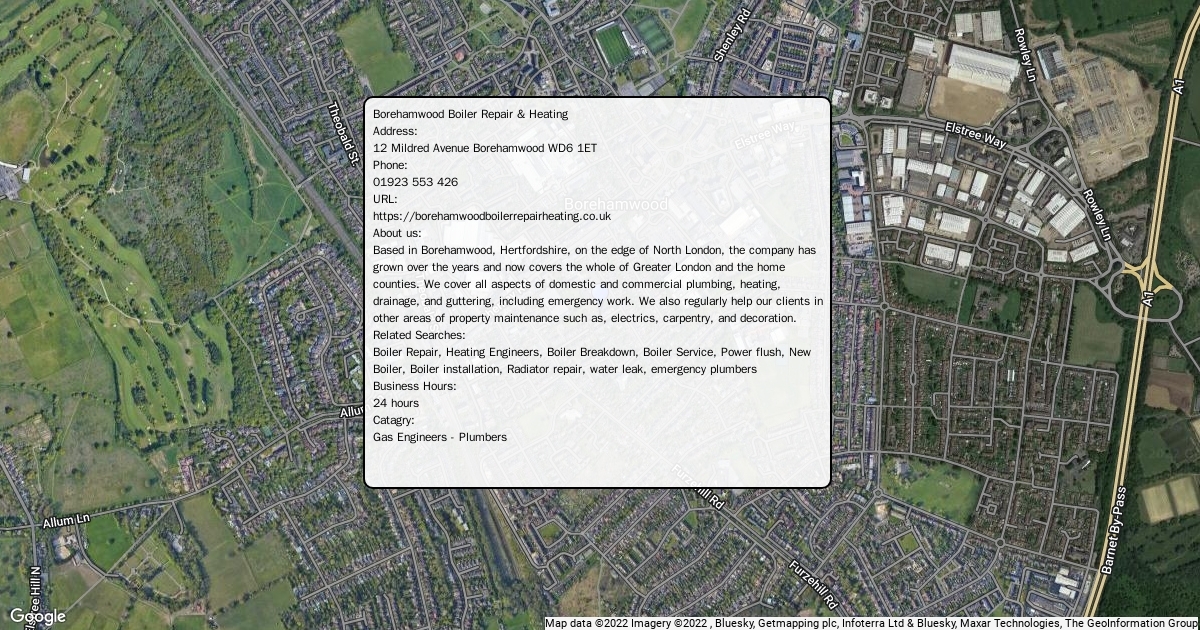 Address: 12 Mildred Avenue Borehamwood WD6 1ET Phone: 01923 553 426 URL: https://borehamwoodboilerrepairheating.co.uk About us: Based in Borehamwood, Hertfordshire, on the edge of North London, the company has grown over the years and now covers the whole of Greater London and the home counties. We cover all aspects of domestic and commercial plumbing, heating, drainage, and guttering, including emergency work. We also regularly help our clients in other areas of property maintenance such as, electrics, carpentry, and decoration. Related Searches: Boiler Repair, Heating Engineers, Boiler Breakdown, Boiler Service, Power flush, New Boiler, Boiler installation, Radiator repair, water leak, emergency plumbers Business Hours: 24 hours Catagry: Gas Engineers - Plumbers