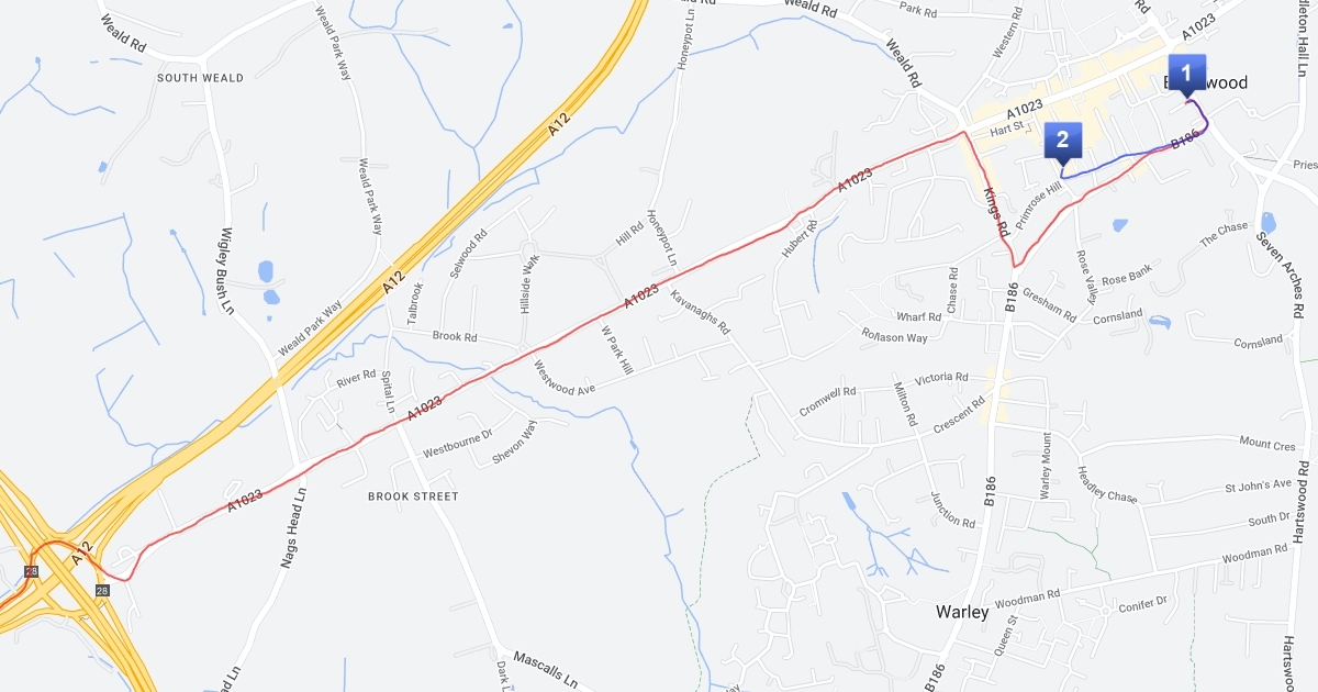 Route to Brentwood Cathedral