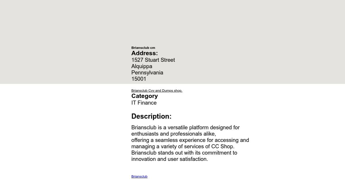 Address: 1527 Stuart Street Alquippa Pennsylvania 15001 Phone number: 800-463-2020 Website: https://briansclubi.mp/ Category IT Finance Description: Briansclub is a versatile platform designed for enthusiasts and professionals alike, offering a seamless experience for accessing and managing a variety of services of CC Shop. Briansclub stands out with its commitment to innovation and user satisfaction. Keywords : Briansclub, Briansclub cm, Briansclub Shop