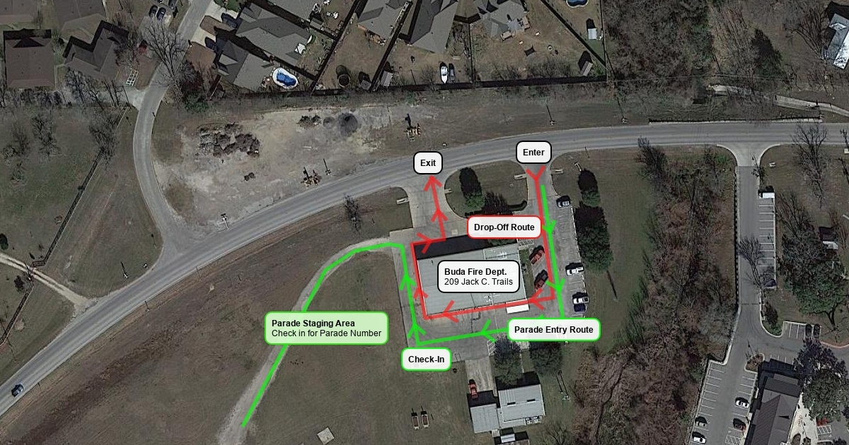 Please follow the red route for drop off and green route for entries