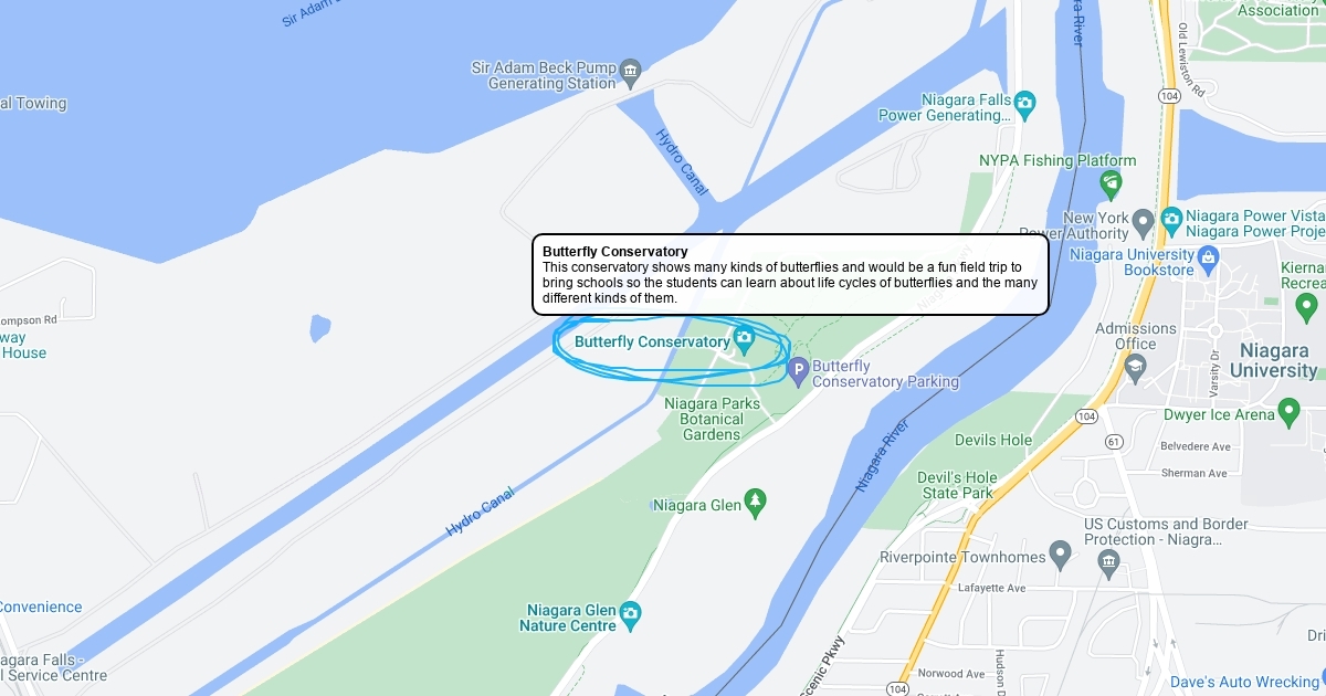 The map shows a conservatory for butterflies.