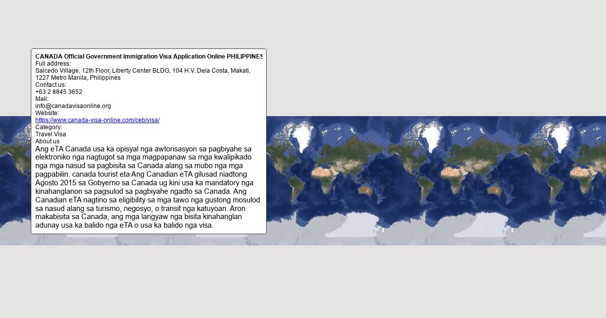 Ang eTA Canada usa ka opisyal nga awtorisasyon sa pagbiyahe sa elektroniko nga nagtugot sa mga magpapanaw sa mga kwalipikado nga mga nasud sa pagbisita sa Canada alang sa mubo nga mga pagpabilin. canada tourist eta Ang Canadian eTA gilusad niadtong Agosto 2015 sa Gobyerno sa Canada ug kini usa ka mandatory nga kinahanglanon sa pagsulod sa pagbiyahe ngadto sa Canada. Ang Canadian eTA nagtino sa eligibility sa mga tawo nga gustong mosulod sa nasud alang sa turismo, negosyo, o transit nga katuyoan. Aron makabisita sa Canada, ang mga langyaw nga bisita kinahanglan adunay usa ka balido nga eTA o usa ka balido nga visa.