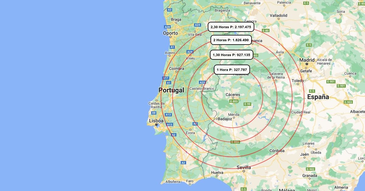 Población por horas de carretera