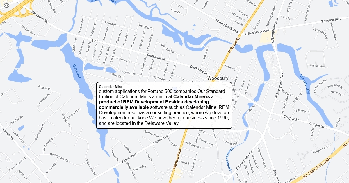 custom applications for Fortune 500 companies Calendar Minis a minimal Calendar Mine is a product of RPM Development Besides developing commercially available software such as Calendar Mine, RPM Development also has a consulting practice, where we develop basic calendar package We have been in business since 1990, and are located in the Delaware Valley