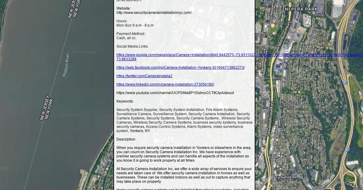When you require security camera installation in Yonkers or elsewhere in the area, you can count on Security Camera Installation Inc. We have experience with premier security camera systems and can handle all aspects of the installation so you know it is going to work properly at all times.