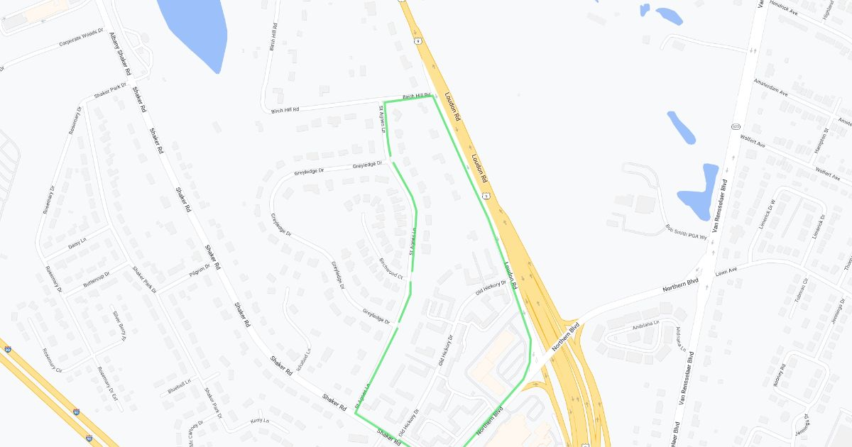 New Loudon Rd, Birch Hill Rd, St Agnes Ln and Shaker Rd