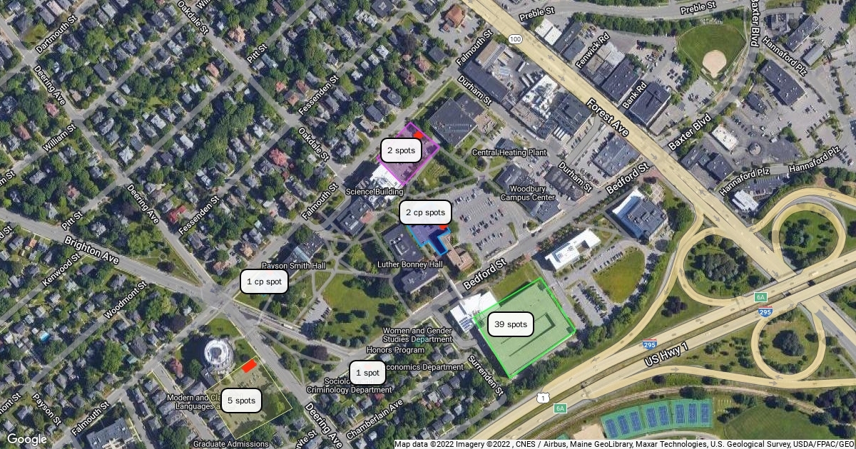 map of potential carpool parking spaces on USM's Portland campus