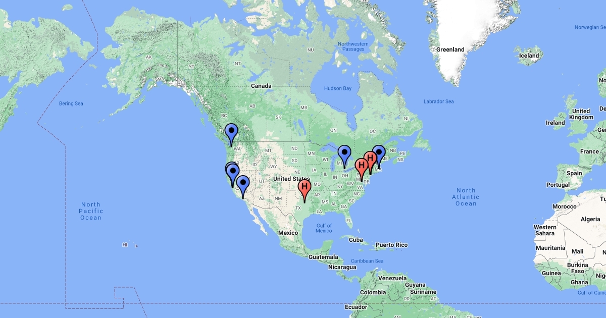 Carte des lieux et formes de la puissance aux Etats-Unis
