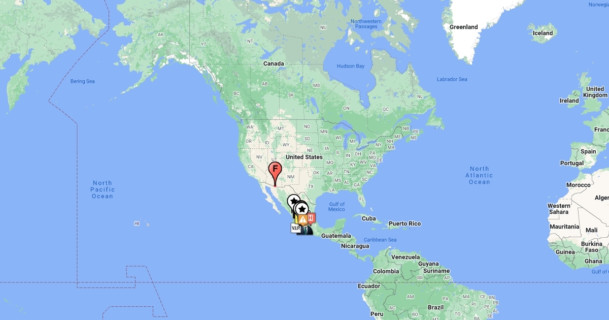 A map depicting events that occur during Matthew Heineman's, Cartel Land.