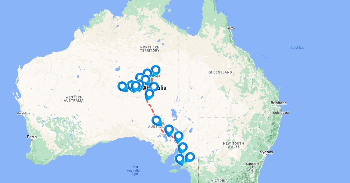 Road trip of Central Australia from Adelaide to Uluru.