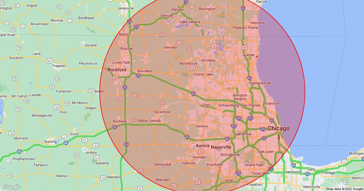 Map of our central vacuum service areas.
