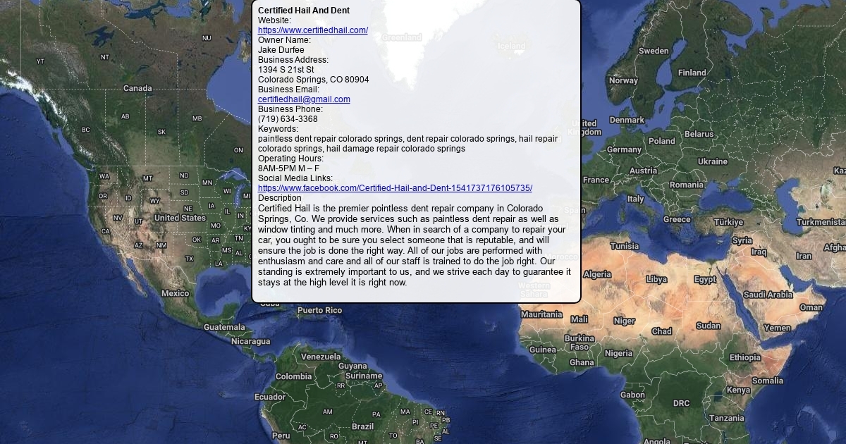 Certified Hail is the premier pointless dent repair company in Colorado Springs, Co. We provide services such as paintless dent repair as well as window tinting and much more. When in search of a company to repair your car, you ought to be sure you select someone that is reputable, and will ensure the job is done the right way. All of our jobs are performed with enthusiasm and care and all of our staff is trained to do the job right. Our standing is extremely important to us, and we strive each day to guarantee it stays at the high level it is right now.