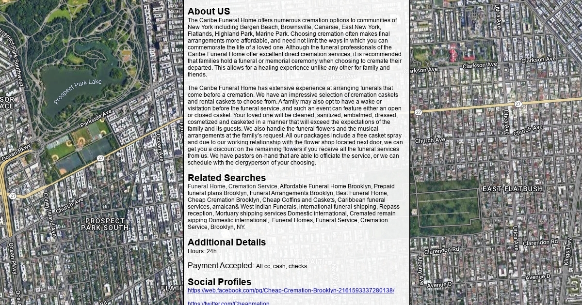 The Caribe Funeral Home offers numerous cremation options to communities of New York including Bergen Beach, Brownsville, Canarsie, East New York, Flatlands, Highland Park, Marine Park.