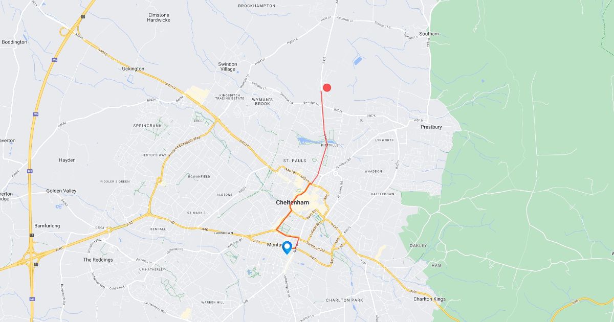 Cheltenham Racecourse to The Suffolk Arms