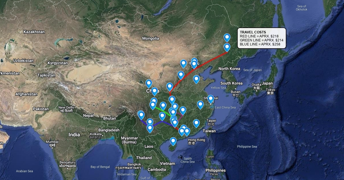 Route of China with descriptions i.e. costs etc