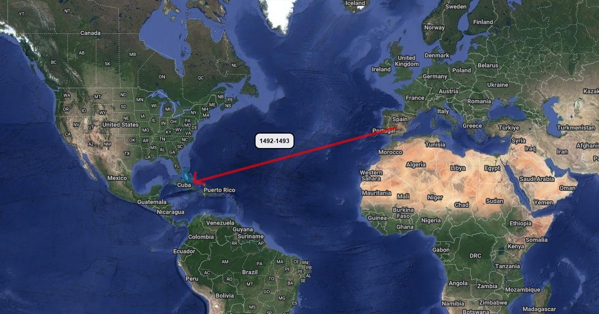 Christopher Columbus's 1492 journey. From Spain to the Bahama's.