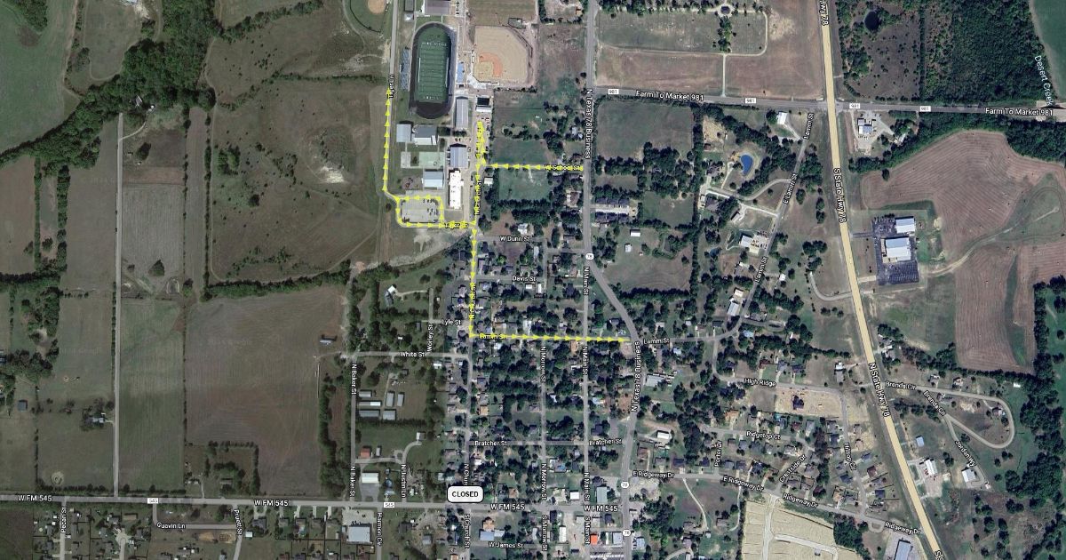 Church St. will be closed at FM 545 on Monday, October 9th.