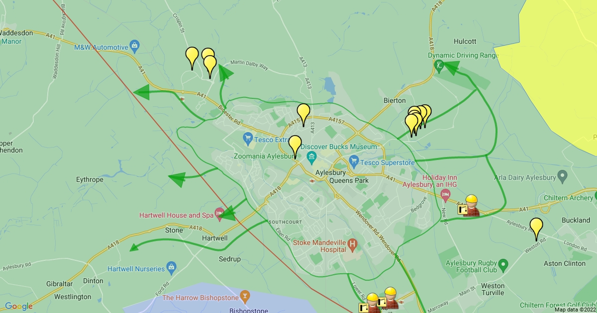 Areas around Aylesbury with HS2