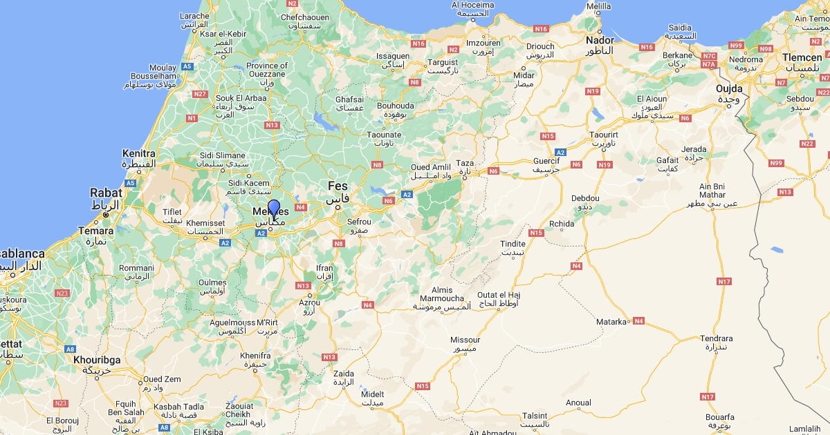 Situato nel cuore del Marocco e al confine con le splendide foreste di cedri, le montagne del Medio Atlante, le oasi di Tafilalt, le due regioni metropolitane più grandi del Marocco e il Marocco montuoso è Meknes. Durante il 11esimo secolo, Meknes fu fondata dagli Almovaridi come insediamento militare. Più tardi, l'insediamento fu trasformato in una città imponente costruita in stile spagnolo-moresco. L'edificio era circondato da alte mura con grandi porte che combinavano lo stile islamico ed europeo