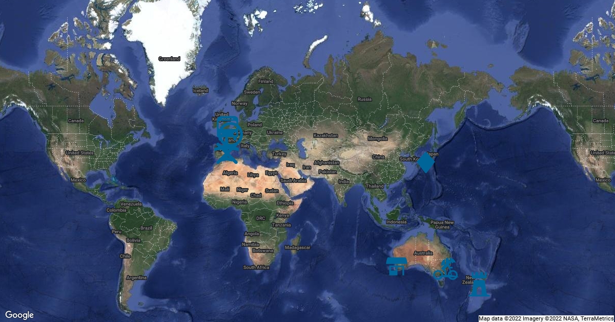 This is the map of where my family lives and some places I have been.