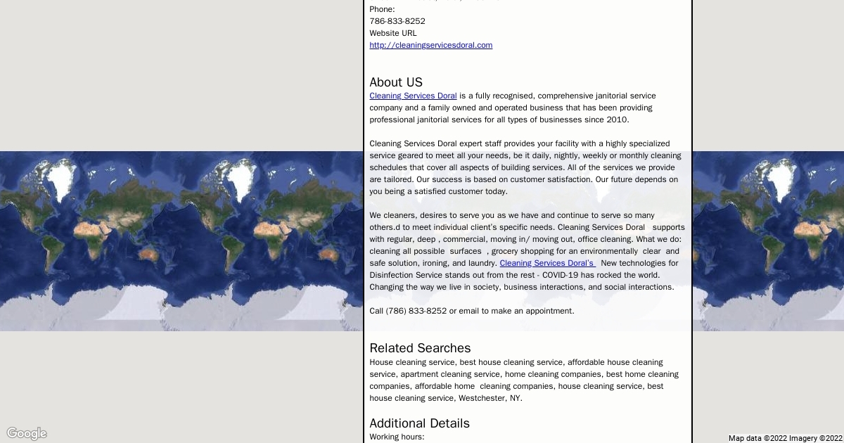 Cleaning Services Doral is a fully recognised, comprehensive janitorial service company and a family owned and operated business that has been providing professional janitorial services for all types of businesses since 2010.