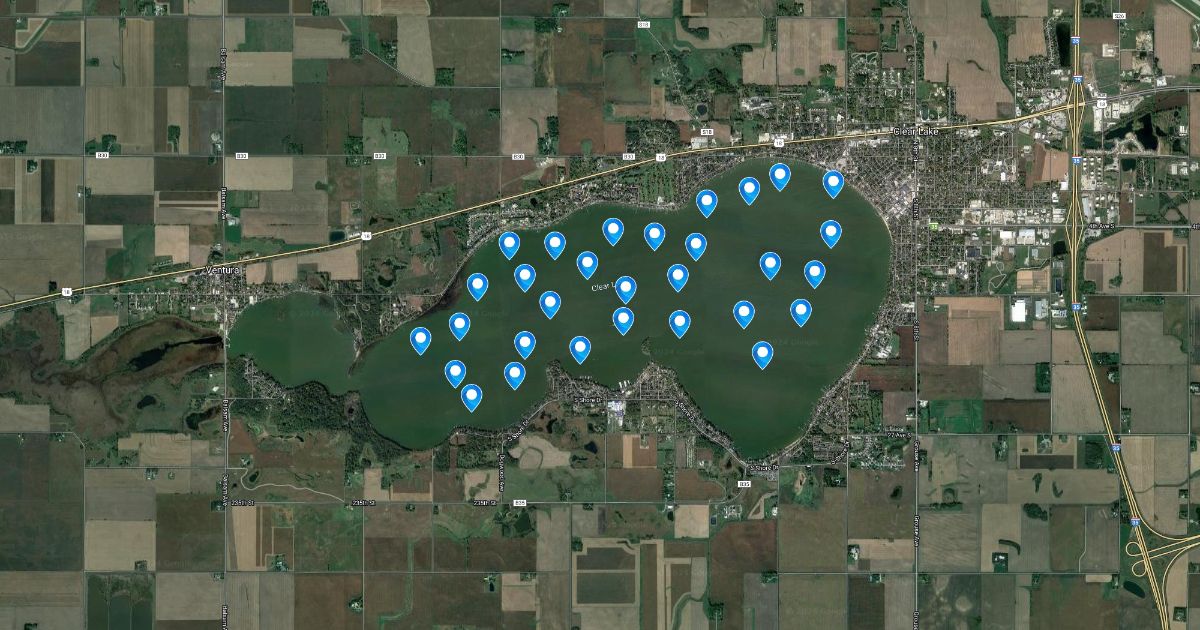 This is a map of the fictional deaths for a fictional game in Clear Lake Iowa.