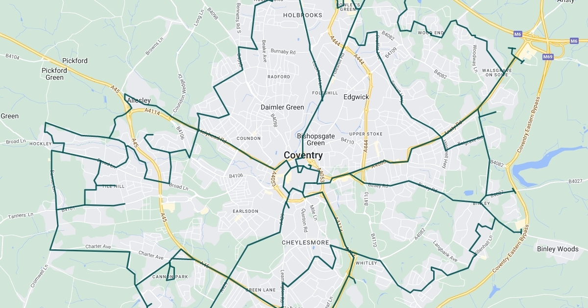 Coventry and Gold coverage in TfWM area