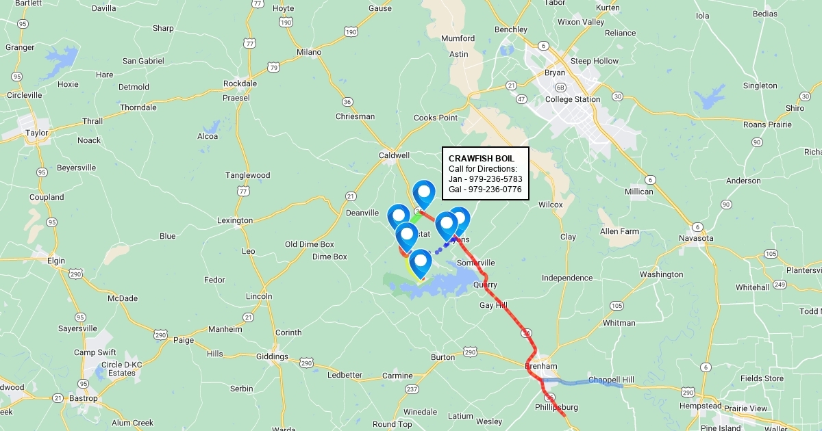 Map from Brenham area to Somerville Crawfish Boil on May 6, 2017