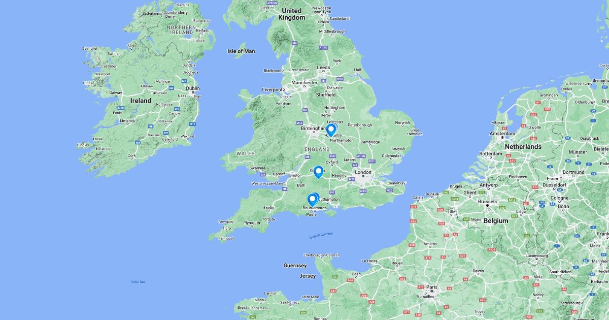 Map showing location of all the Crosscrown Ltd care homes.