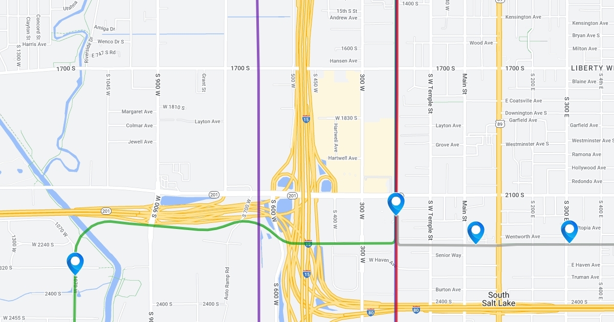 A map of UTA's rail network as of 7/30/15