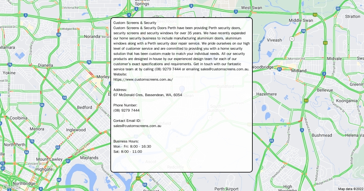 Custom Screens & Security Doors Perth have been providing Perth security doors, security screens and security windows for over 35 years. We have recently expanded our home security business to include manufacturing aluminium doors, aluminium windows along with a Perth security door repair service. We pride ourselves on our high level of customer service and are committed to providing you with a home security solution that has been custom-made to match your individual needs. All our security products are designed in-house by our experienced design team for each of our customer’s exact specifications and requirements. Get in touch with our fantastic service team at by calling (08) 9279 7444 or emailing [email protected].