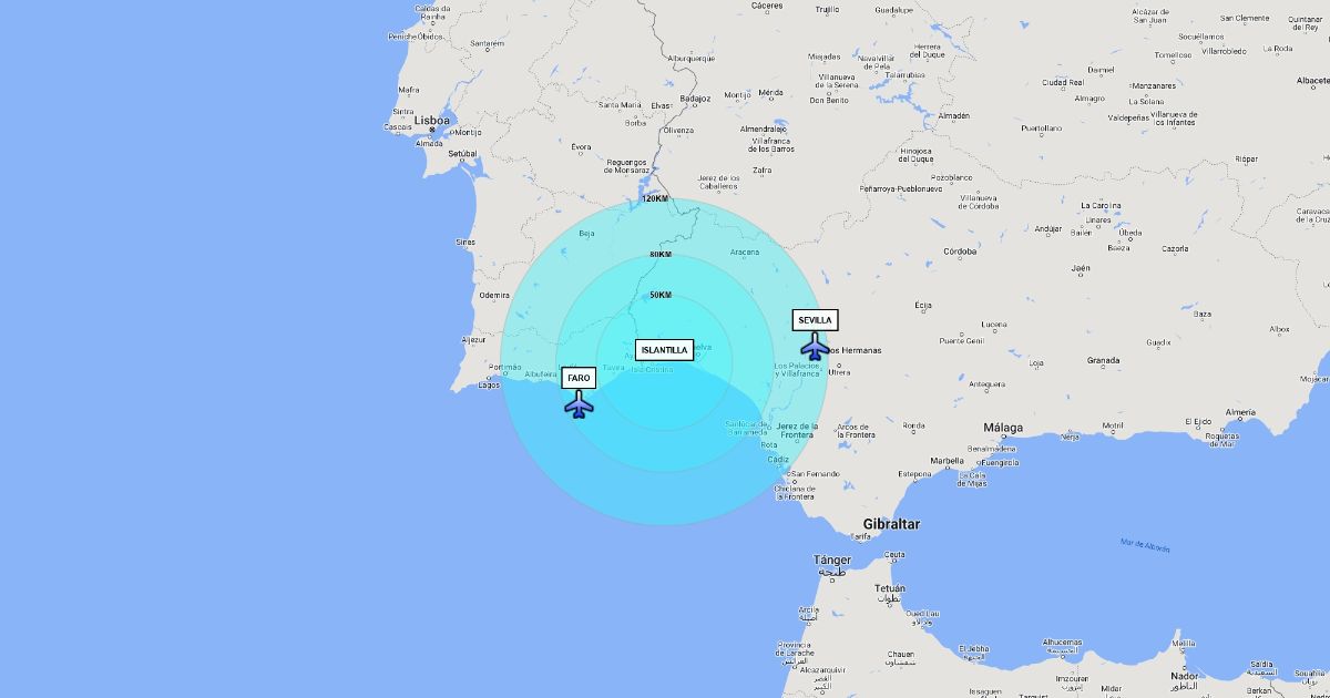 MAPA CON REFERENCIA DE DISTANCIAS 120KM A 50KM