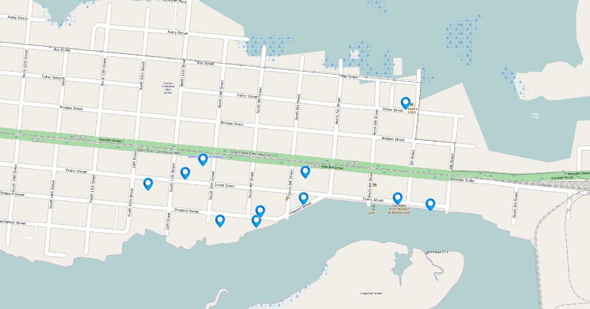 Bike Rack locations in Downtown Morehead City