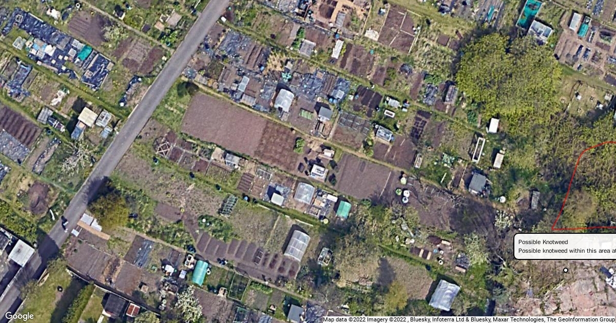 Site marked in red of possible Japanese Knotweed