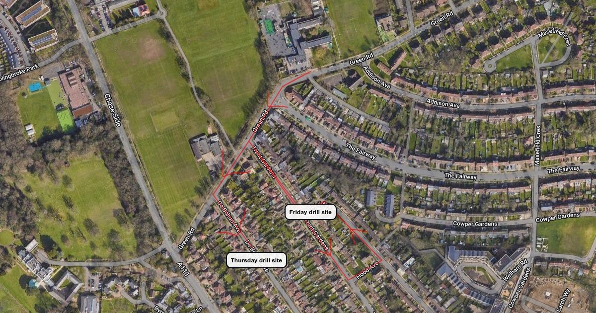 De Bohun route and drill sites