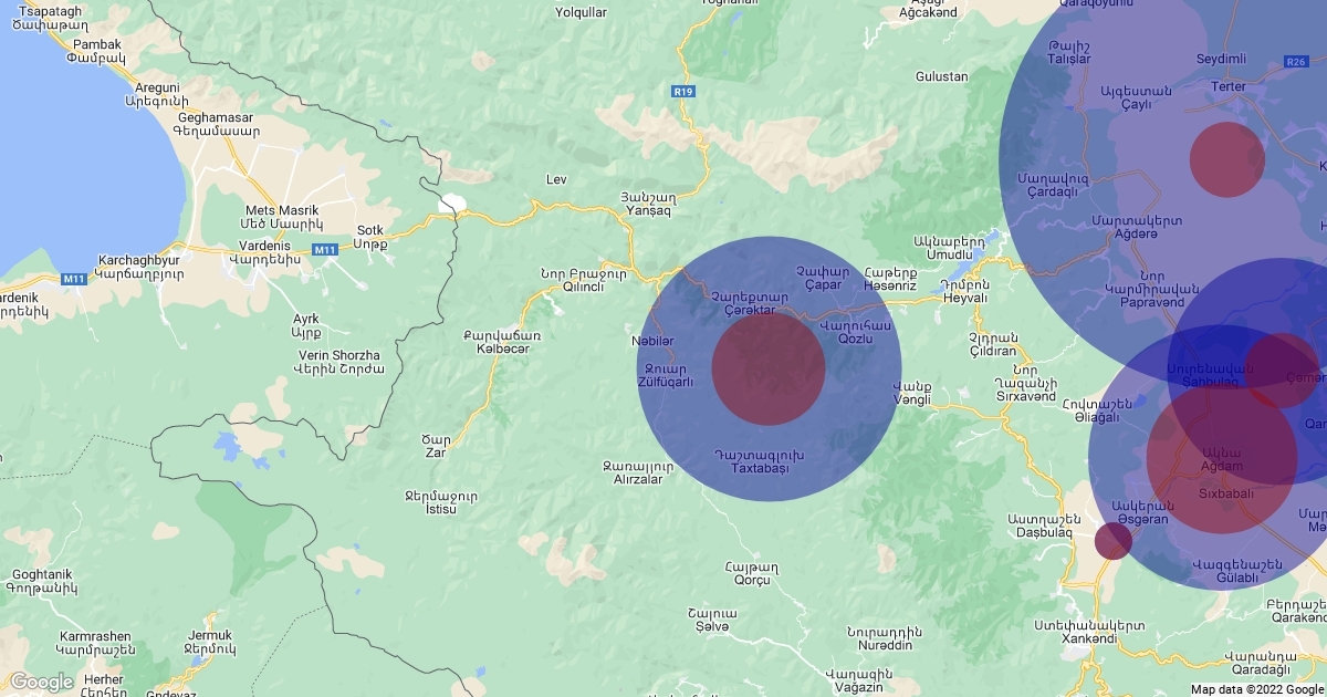 The map illustrates mine casualties in Qarabagh since 2020 treaty