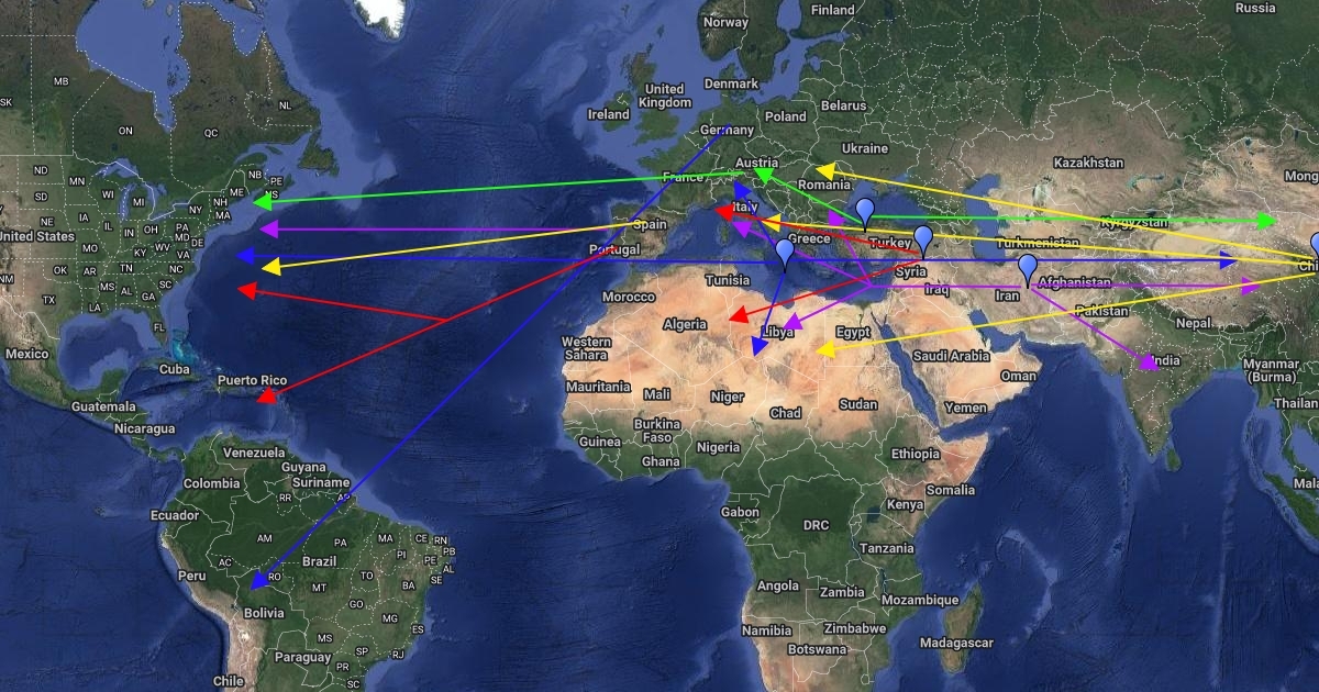 The diffusion of pomegranates, beetroots, yogurt, bacon, and wool.