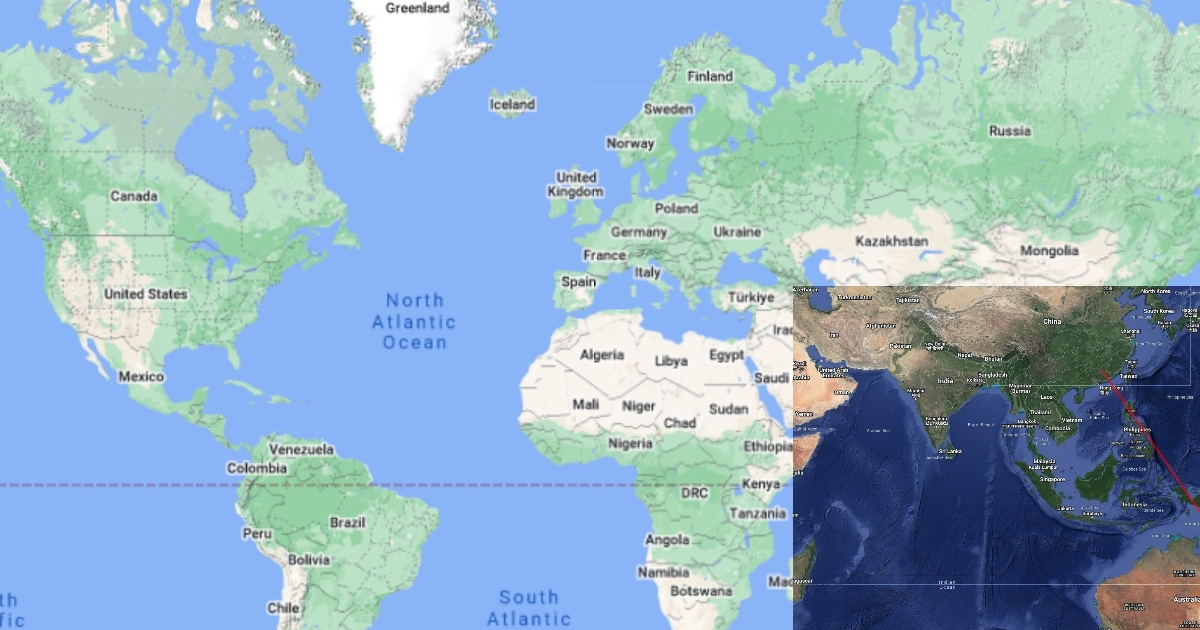 Distance from China to Australia