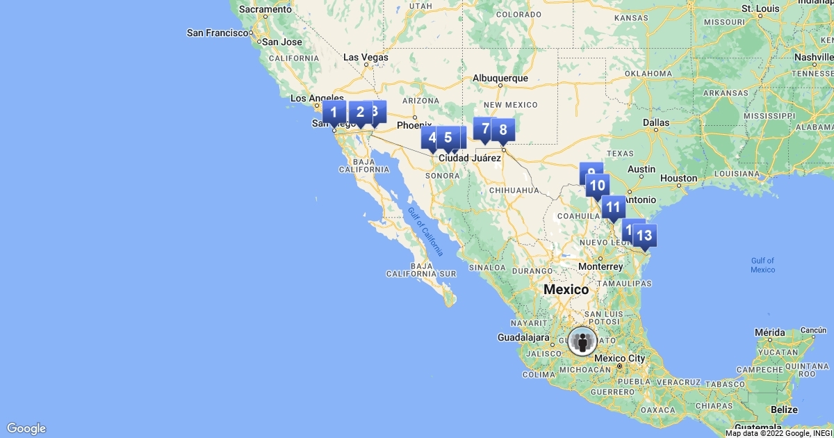 Distancia entre Guanajuato y las fronteras de USA.