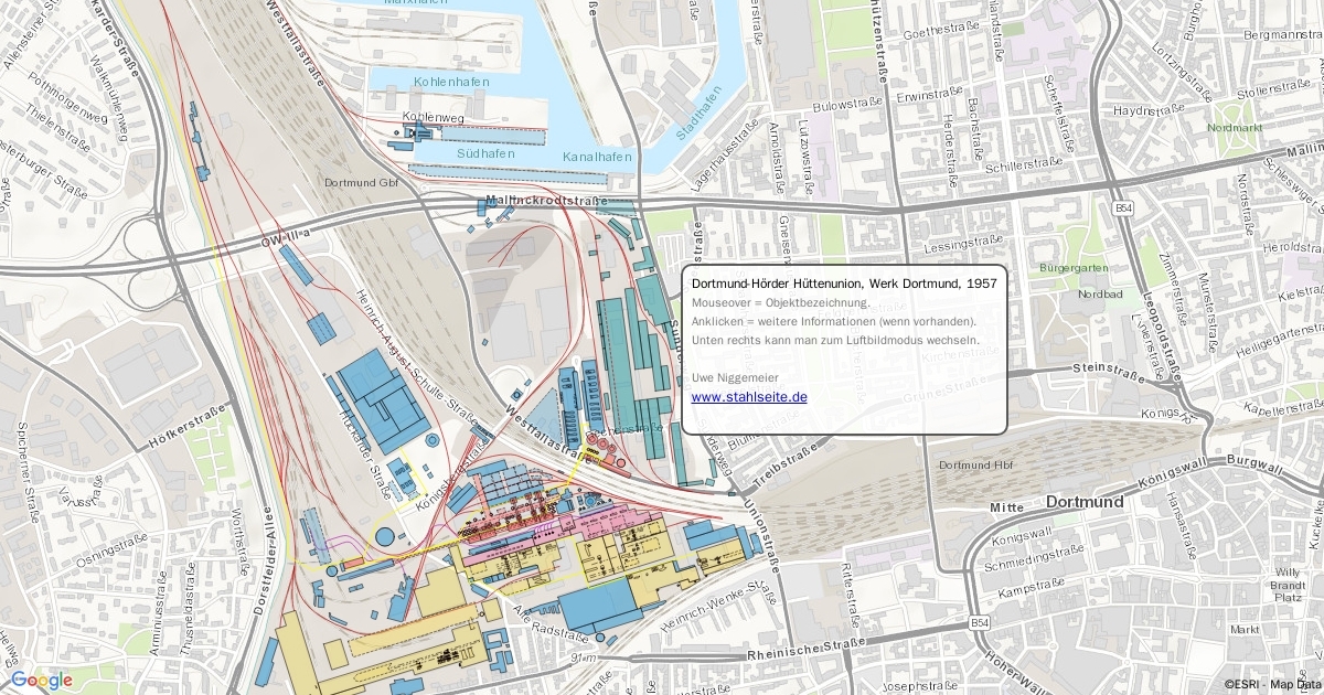Karte der Dortmund-Hörder Hüttenunion, Werk Dortmund und der Rheinstahl-Union Brückenbau circa 1957.