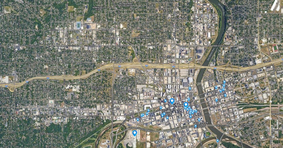 Map of restaurants in downtown Des Moines.