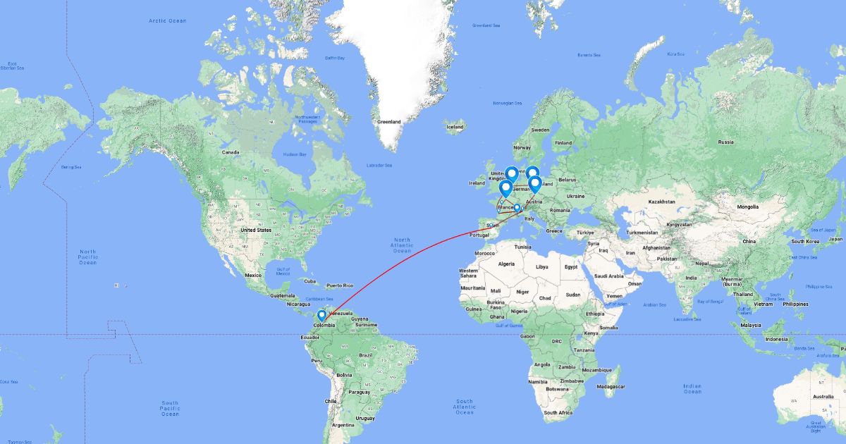 Ruta de viajes por Europa tras la misión Espada de Platino entre el 31 de marzo y el 17 de mayo de 2017.
