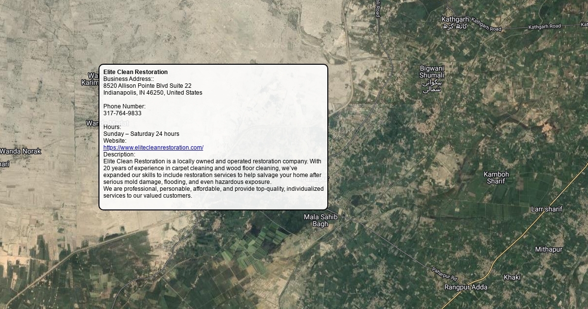 Business Address:: 8520 Allison Pointe Blvd Suite 22 Indianapolis, IN 46250, United States Phone Number: 317-764-9833 Hours: Sunday – Saturday 24 hours Website: https://www.elitecleanrestoration.com/