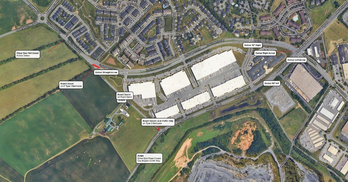 Detour for Elmer Derr Rd